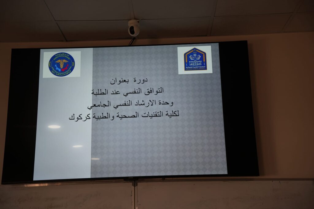 الجامعة التقنية الشمالية – Northern Technical University كلية التقنيات الصحية والطبية/ كركوك أقامت دورة للطلبة بعنوان(التوافق النفسي لدى الطلبة)